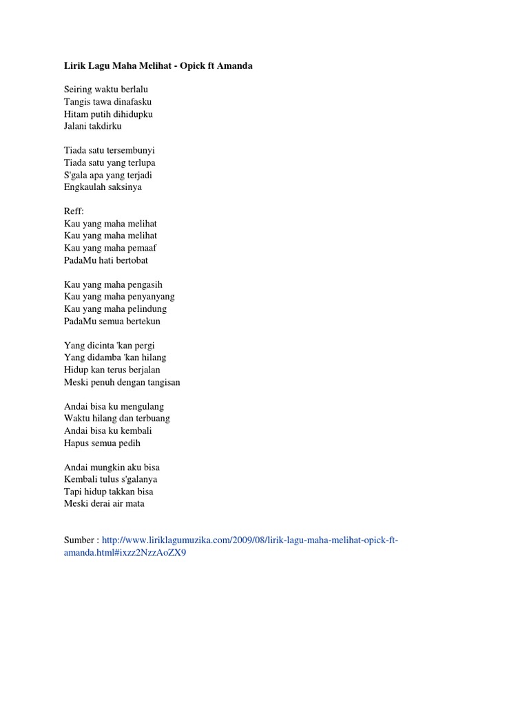 2 days agoBerikut ini lirik lagu Tiba Tiba Hilang dari Mawar de Jongh. You are all that i can think of you. Lirik Bila Waktu Tlah Berakhir dari Opick ini dipublikasikan pada tanggal 7 October 2005 17 tahun yang lalu dan diciptakan sendiri oleh OpickLagu ini ada di dalam album Salam Ya Rosulullah yang didistribusikan oleh label Forte Record.